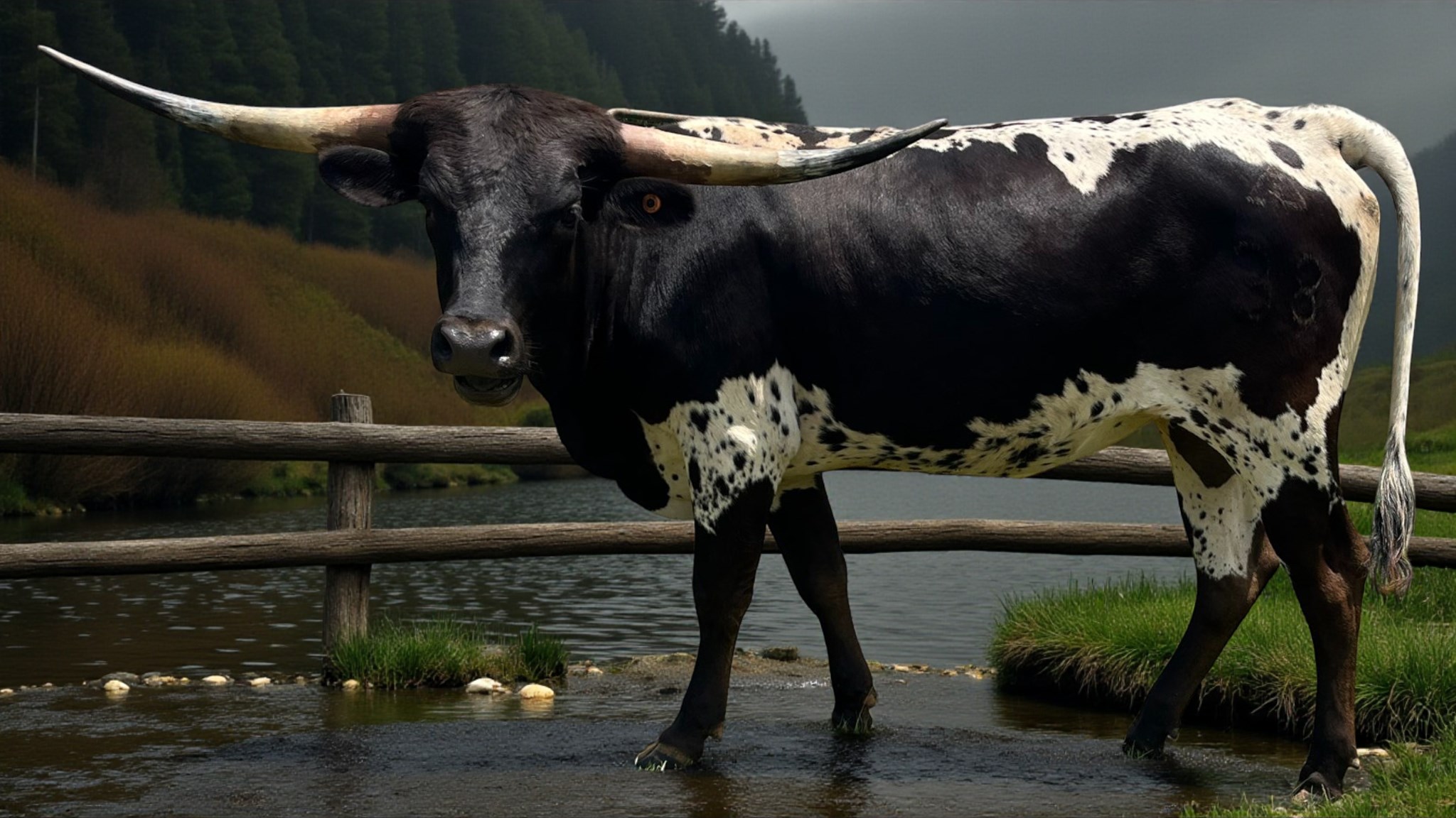 This true black and white heifer is throwing some horn. She is mild mannered and an easy keeper.