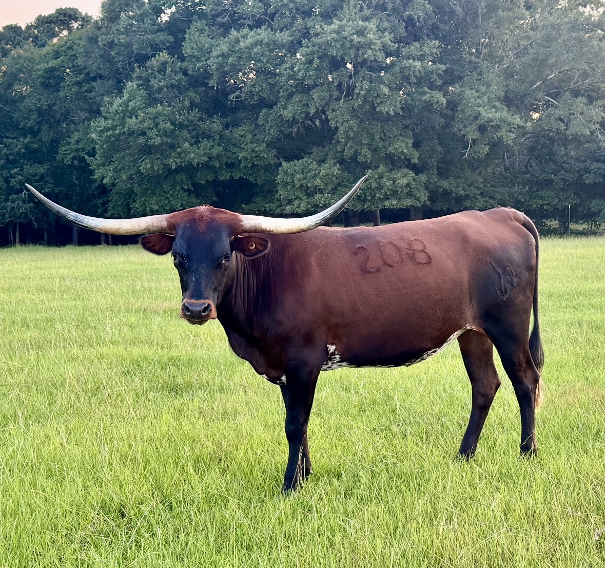 Very slick Parker brown heifer out of Investment. She is easy to work/handle. Has a bull calf (10-5-25) at side and currently exposed to Riverforks Thunderbolt. Possible 3 in 1.