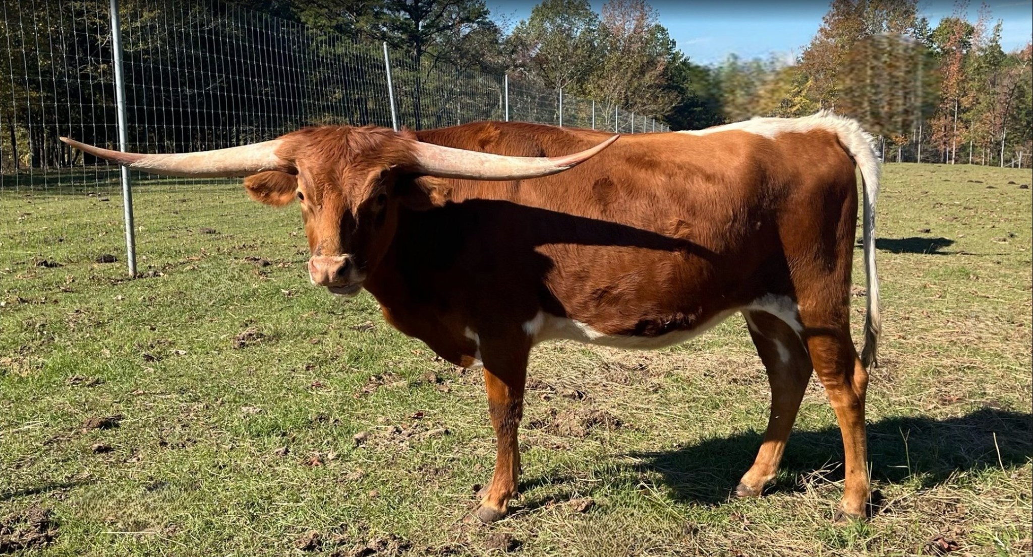 This heifer is the daughter of the beautiful LT Cinderlla. Horn direction is showing a promising future.